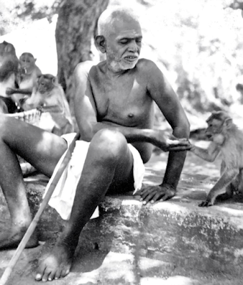 "Vajreswari, started to cry, and she pleaded with Bhagavan, “Send this monkey out; I want to sit on your lap.” But the young monkey would not give up his privileged place and continued to sit there. This rivalry between the child and the young monkey thoroughly amused Bhagavan but at the same time he wanted to appease both of them.